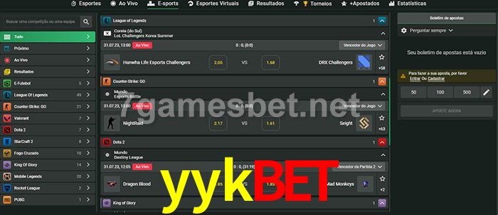 O yykbet oferece uma grande seleção de opções de apostas em e-sports com probabilidades competitivas